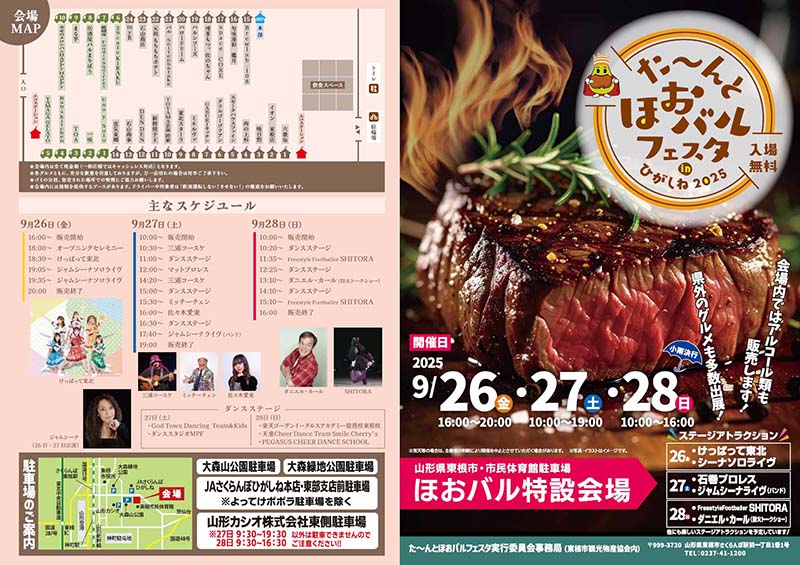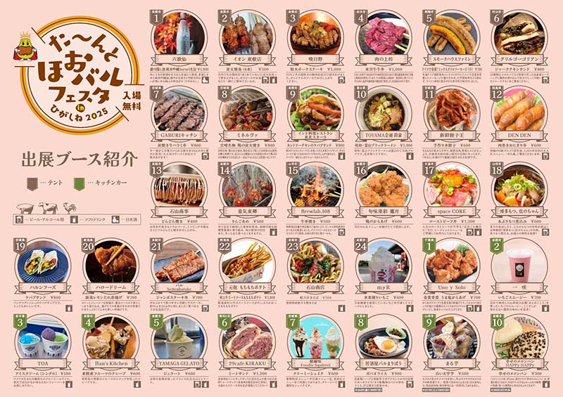 県内外の肉を中心としたグルメを楽しめる「た~んとほおバルフェスタinひがしね2025」を開催します。