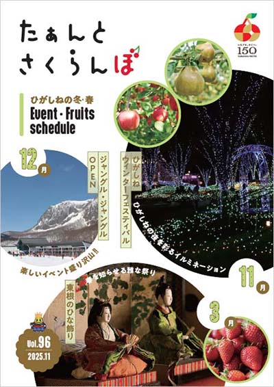 観光パンフレット 東根市観光ガイドブックCherry up!! 2025(デジタルブック) ※P20「心の宿 青松館」P23「寿司とレストラン 大黒」は令和7年4月より廃業・閉店となりました。 『たぁんとさくらんぼ』Vol.95(デジタルブック) English Brochure ひがしね観光マップの英語版です。 画像クリックにてPDFファイルでご覧いただけます。 PDF FILE DOWNLOAD→English Brochure English Brochure(Digital book) 2025-08-28T13:08:22+09:00 ひがしねどっとこむ